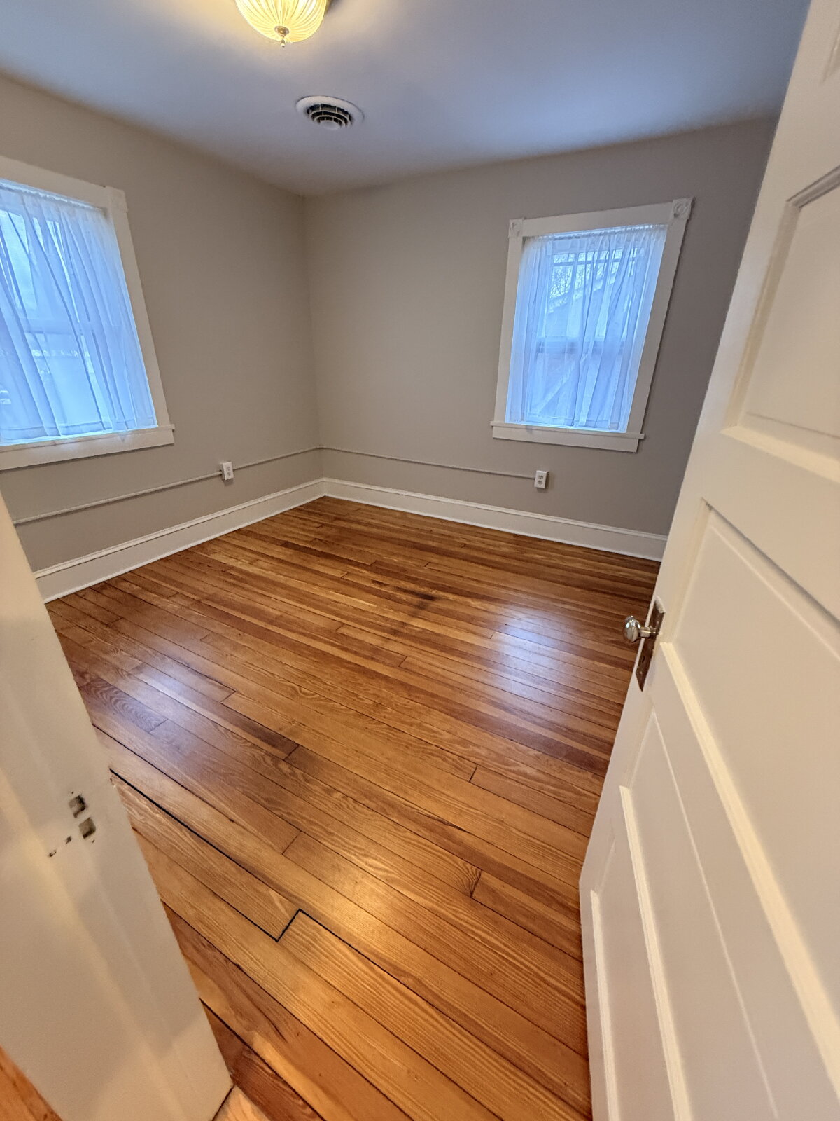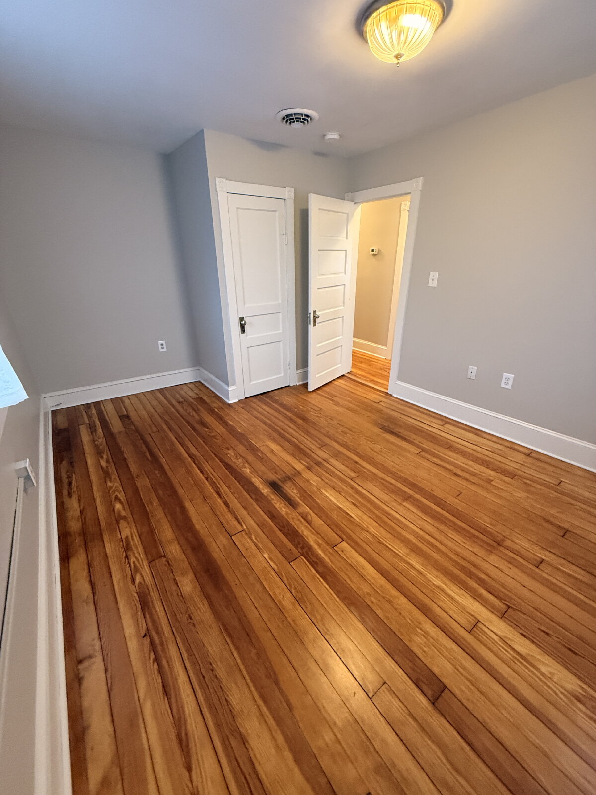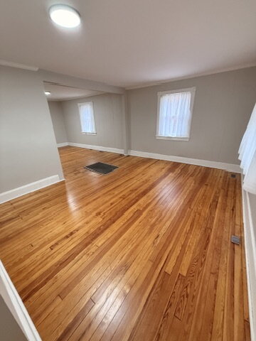 Beautiful hardwood floors add warmth and character throughout the home. The kitchen includes a refrigerator and oven, providing everyday functionality.